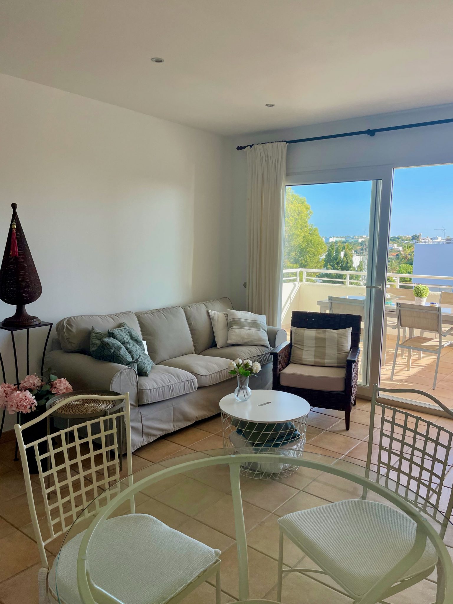 Das 70 m2 große Apartment, mit Zugang über Aufzug und Treppe, besteht aus einem Wohn-/ Essbereich, einer großen Terrasse mit Gartenblick, einer voll ausgestatteten offenen Küche, einem Hauswirtschaftsraum, 2 Schlafzimmern und 2 Bädern. Das Hauptschlafzimmer hat ein „En Suite“-Badezimmer und Terrassenzugang. Die Wohnung ist voll klimatisierbar.